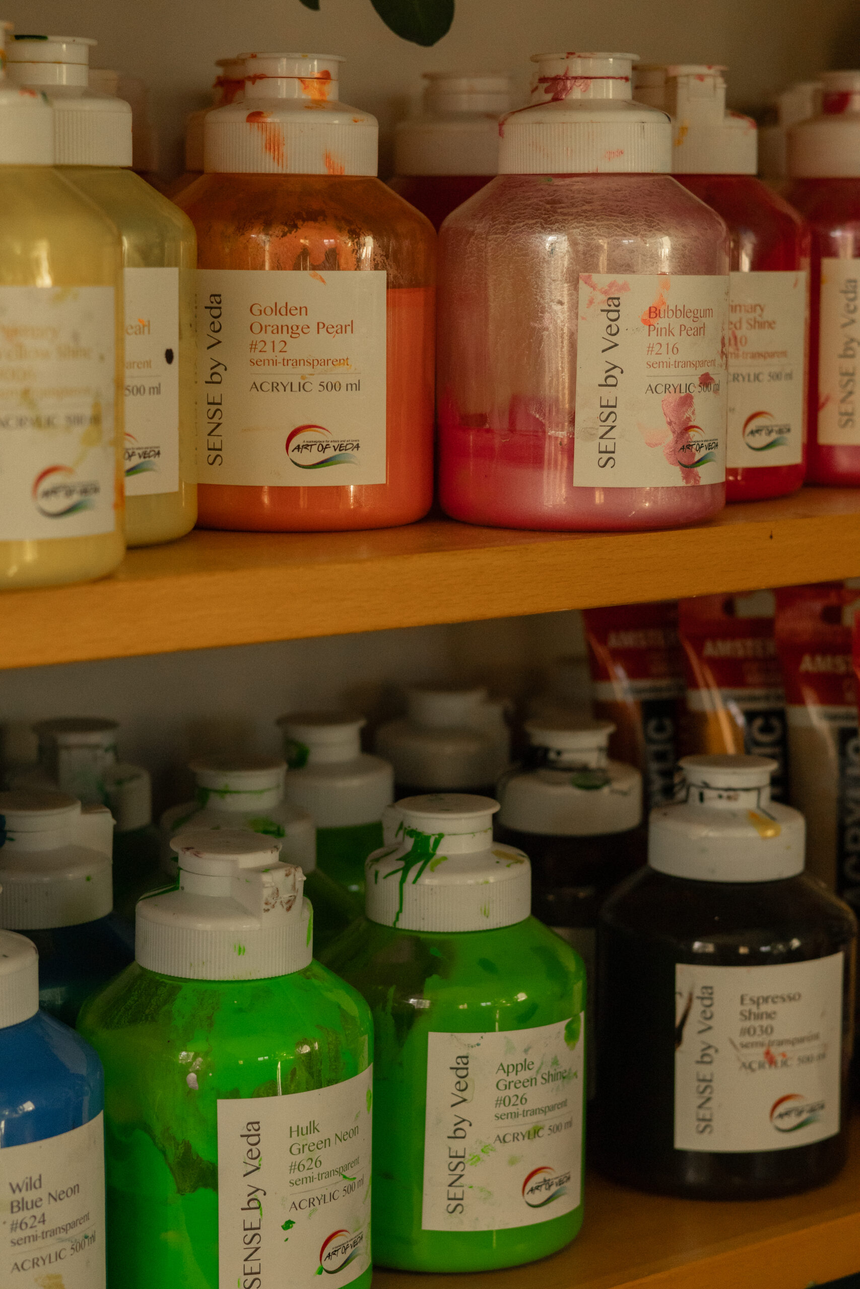 Lekfullt målande i olika lager – utan krav, bara utforskande.